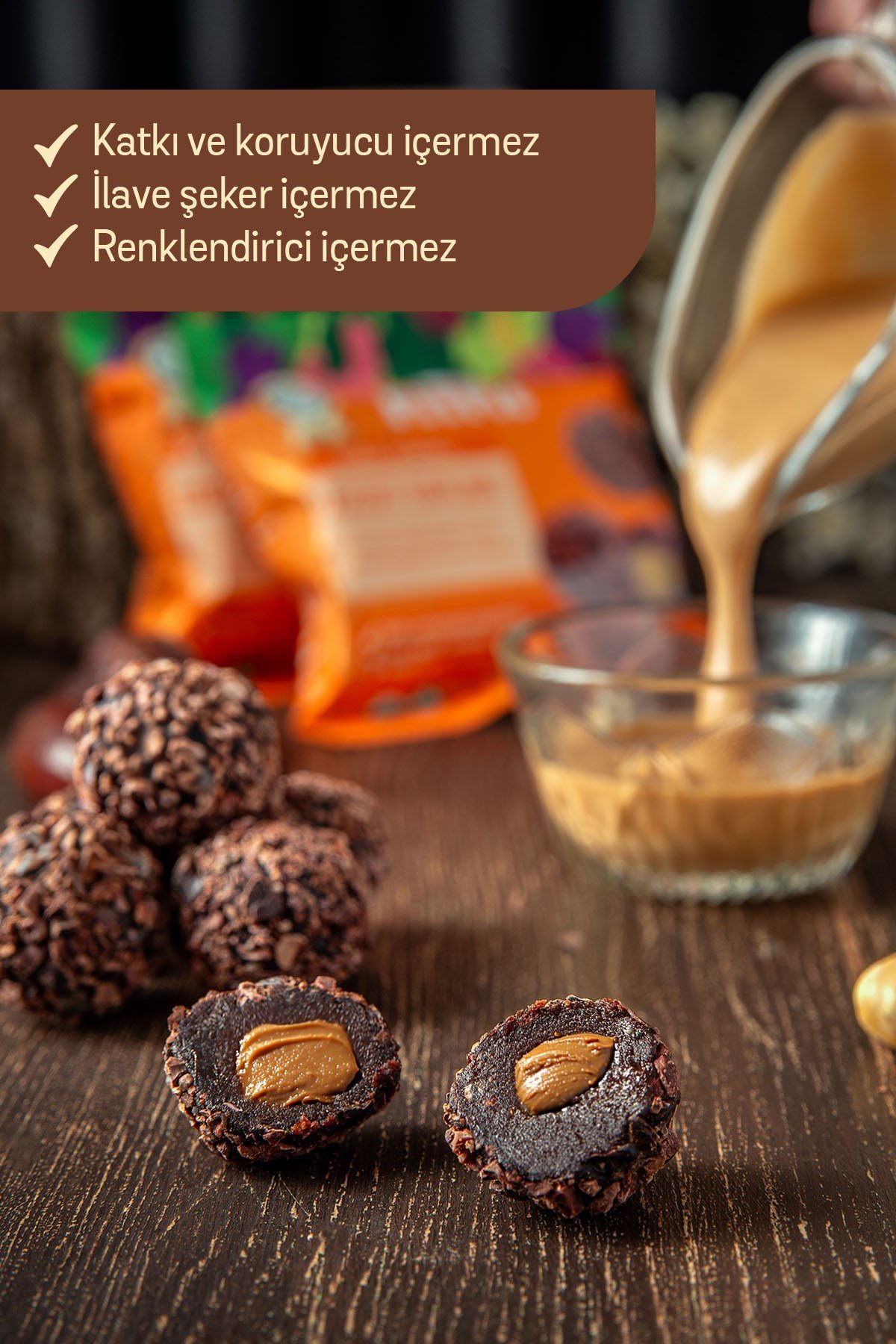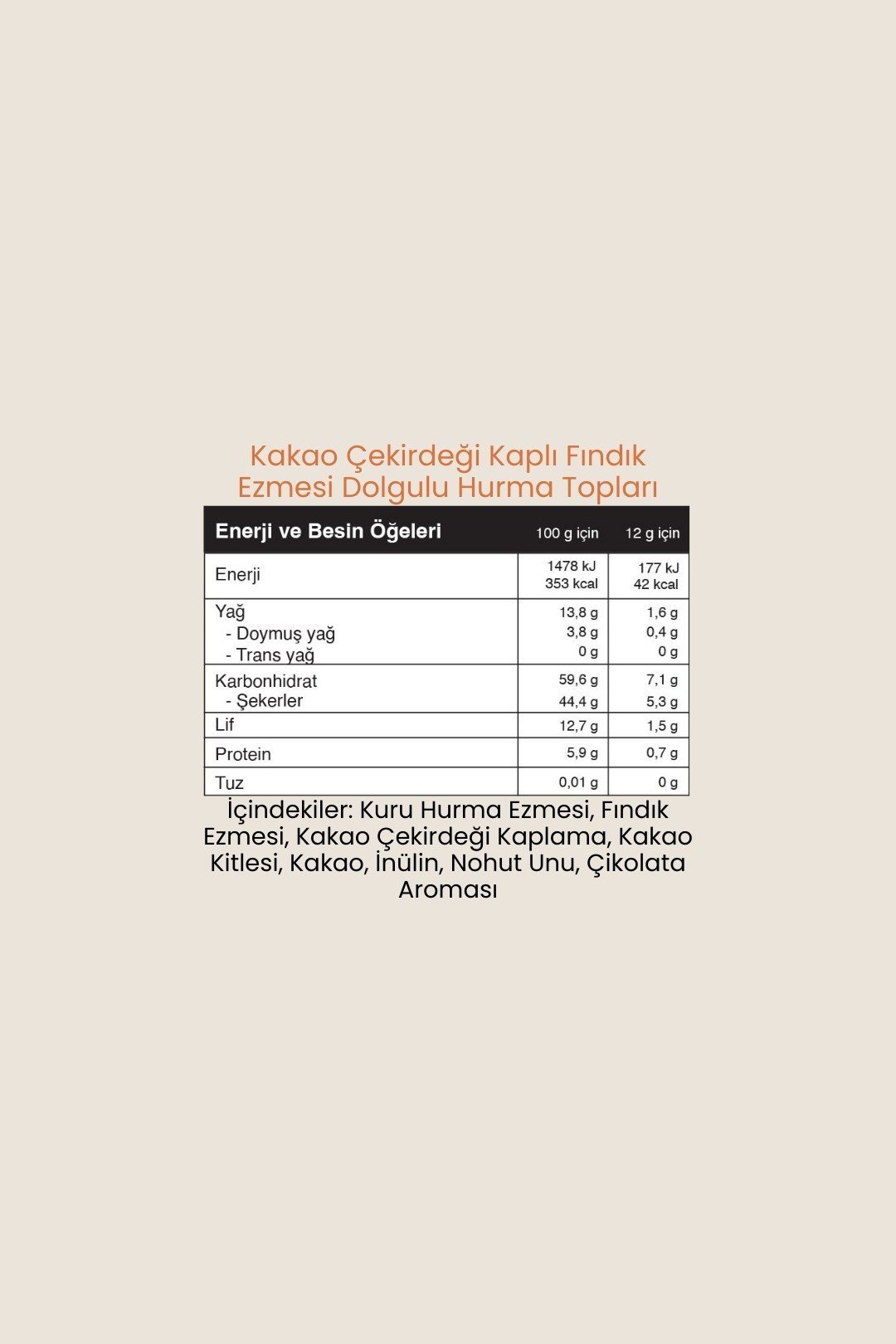 Kakao Çekirdeği Kaplı Fındık Ezmesi Dolgulu Hurma Topları | Doğal İçerikli Lezzet Topları 36 g