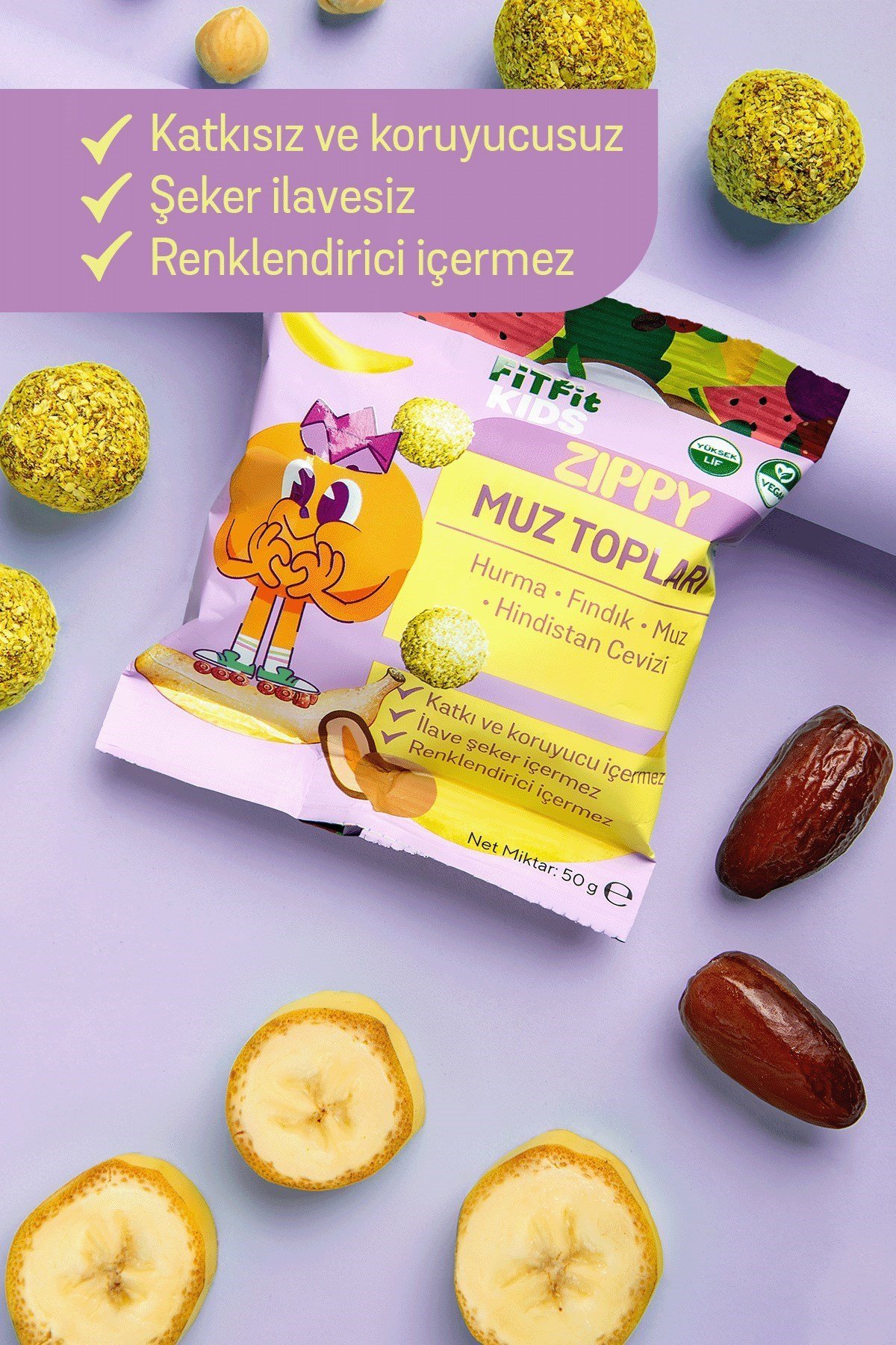 Her biri 50 g olan paketler, katkısız ve ilave şekersiz içeriğiyle ebeveynler için güvenli, çocuklar için keyifli bir atıştırmalık alternatifi sunar.