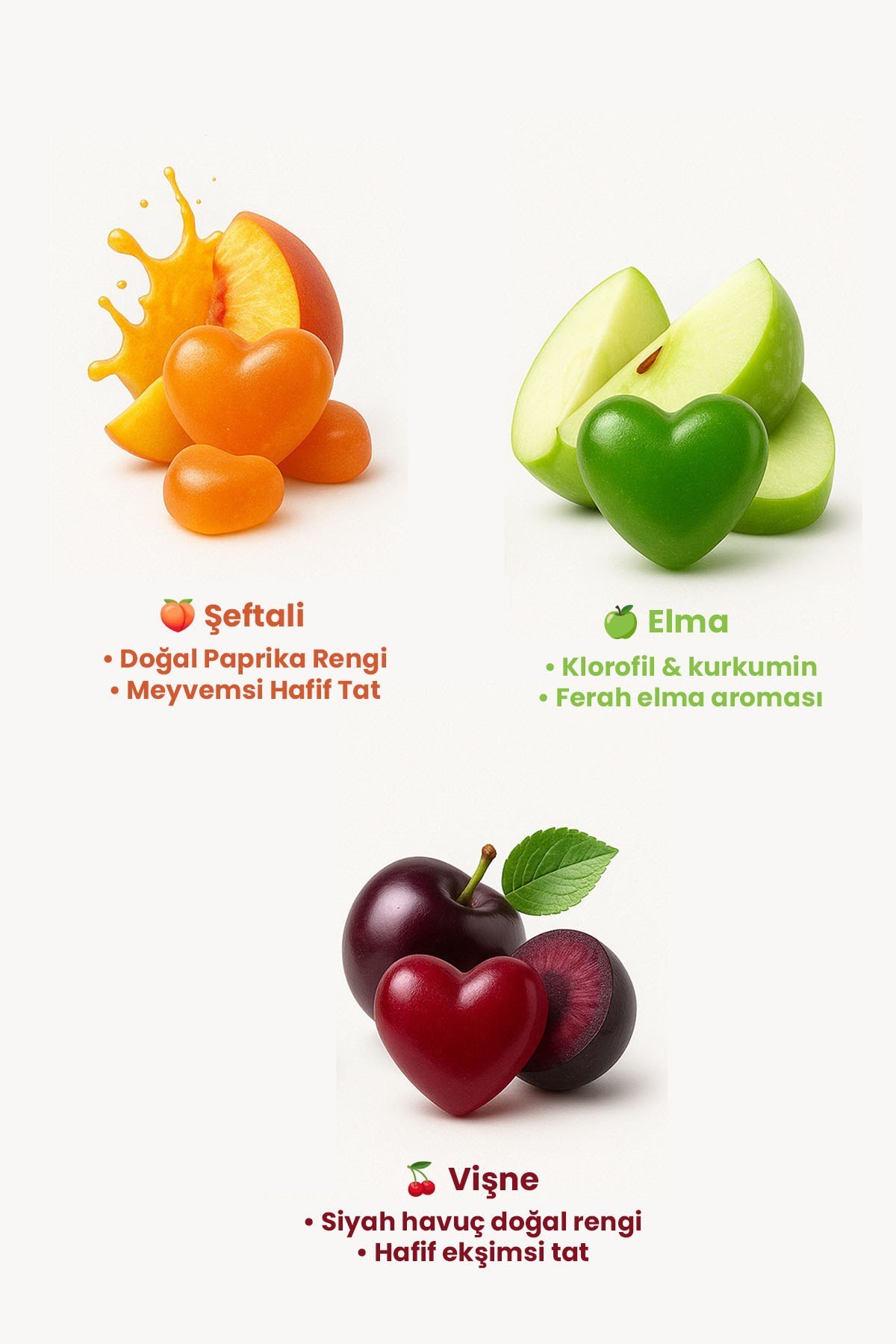 Fruit Snacks Şeftali, Elma ve Vişne Meyveli Yumuşak Şeker | A-C-E Vitaminli, Gerçek Meyve Atıştırmalığı