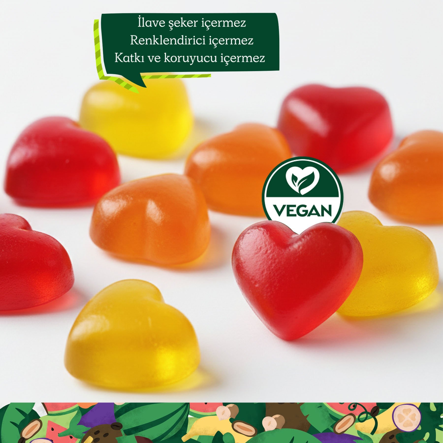 Karışık Vegan Yumuşak Şeker | Vitamin A+C+E, Jelatinsiz & Glutensiz Doğal Atıştırmalık 65 gr x 5 Adet