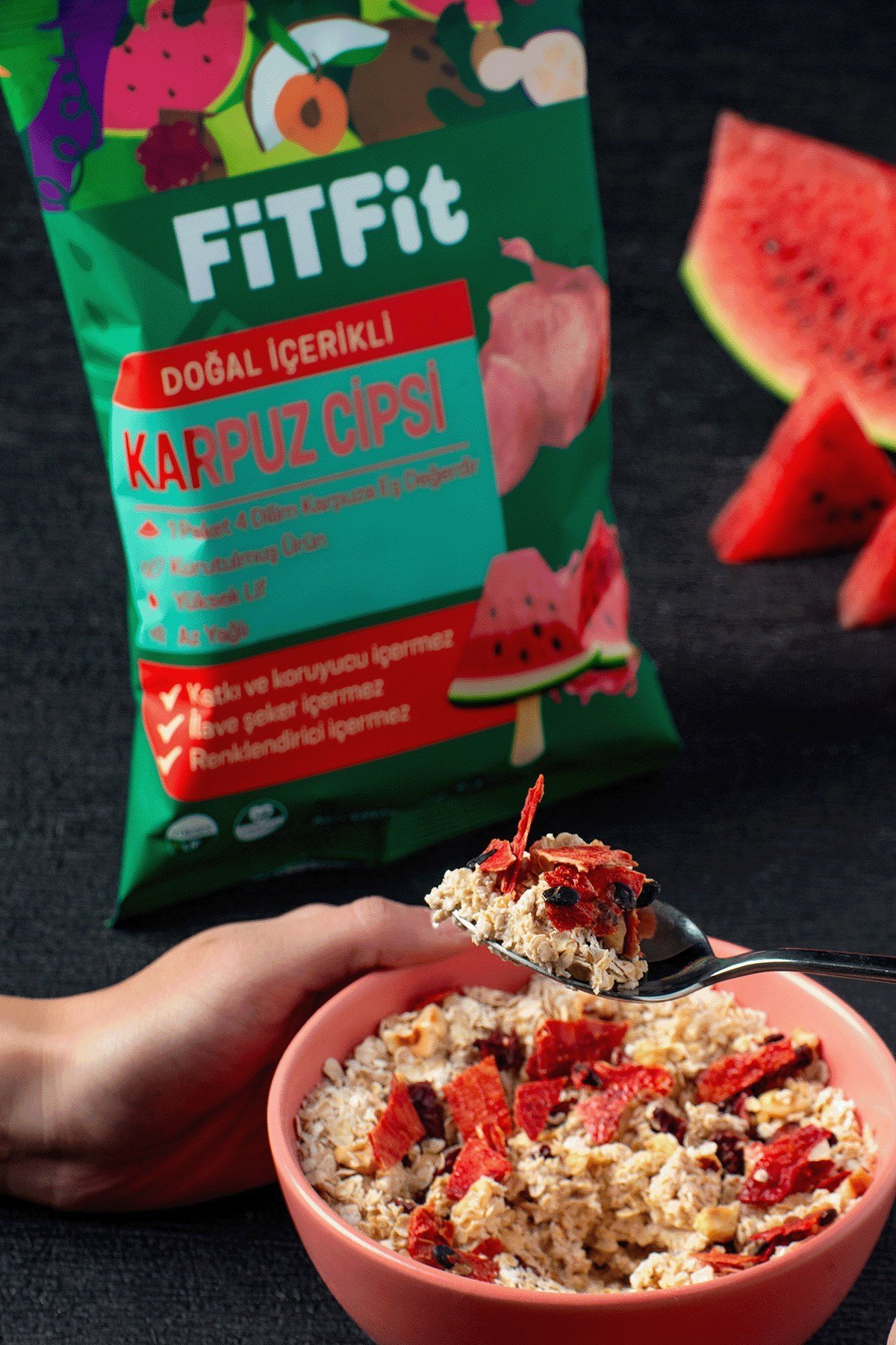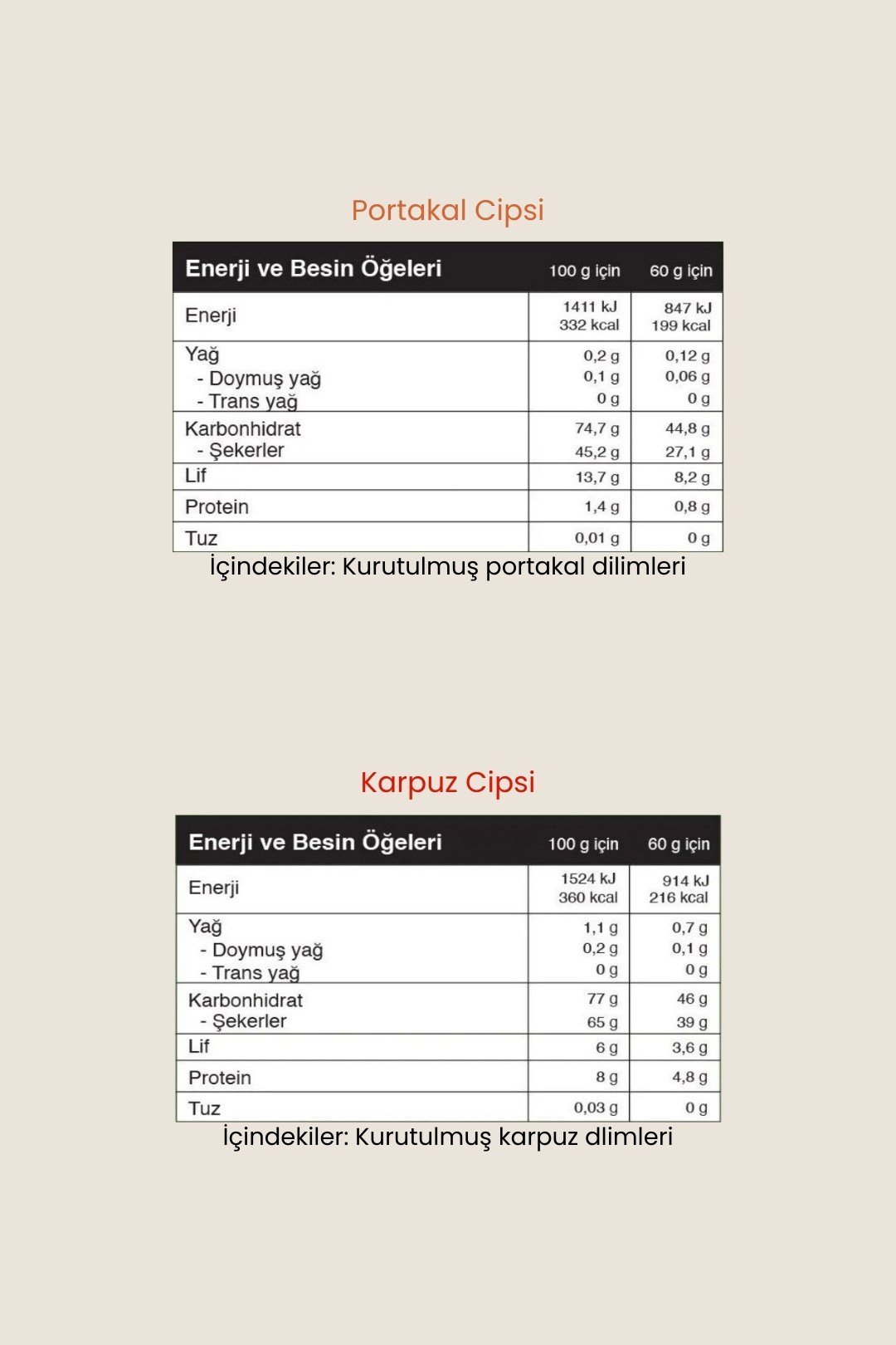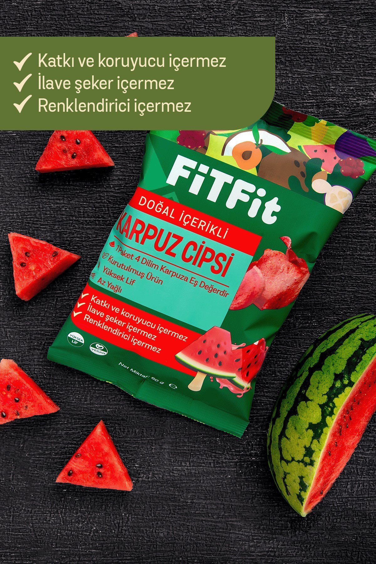 İçindekiler: Kurutulmuş karpuz dilimleri.